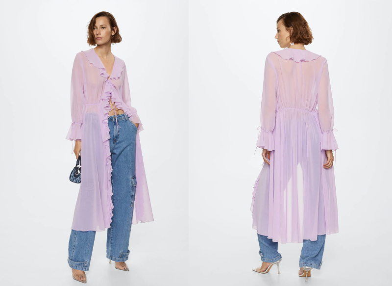Entre las opciones más interesantes que tenemos para renovar el armario en Mango se encuentra este vestido fluido volantes, cuyo precio de venta actual es de 49,99 euros. Está disponible en color morado claro/pastel.