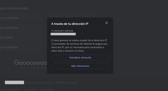 En la internet, el envío y recepción de datos ocurre a través de una dirección única, o identificador digital, conocida como dirección del protocolo de internet (IP). A través de la IP, los sitios en internet y tu IPS pueden reconocer tu dispositivo y en dónde se encuentra. Por ejemplo, si accedes al buscador de Google y pones «Restaurantes», es posible que los resultados que te aparezcan sean los más cercanos a tu ubicación, o en tu ciudad. Si bajas hasta el final de la página notarás que aparece tu ubicación al lado del mensaje «A través de tu dirección IP».