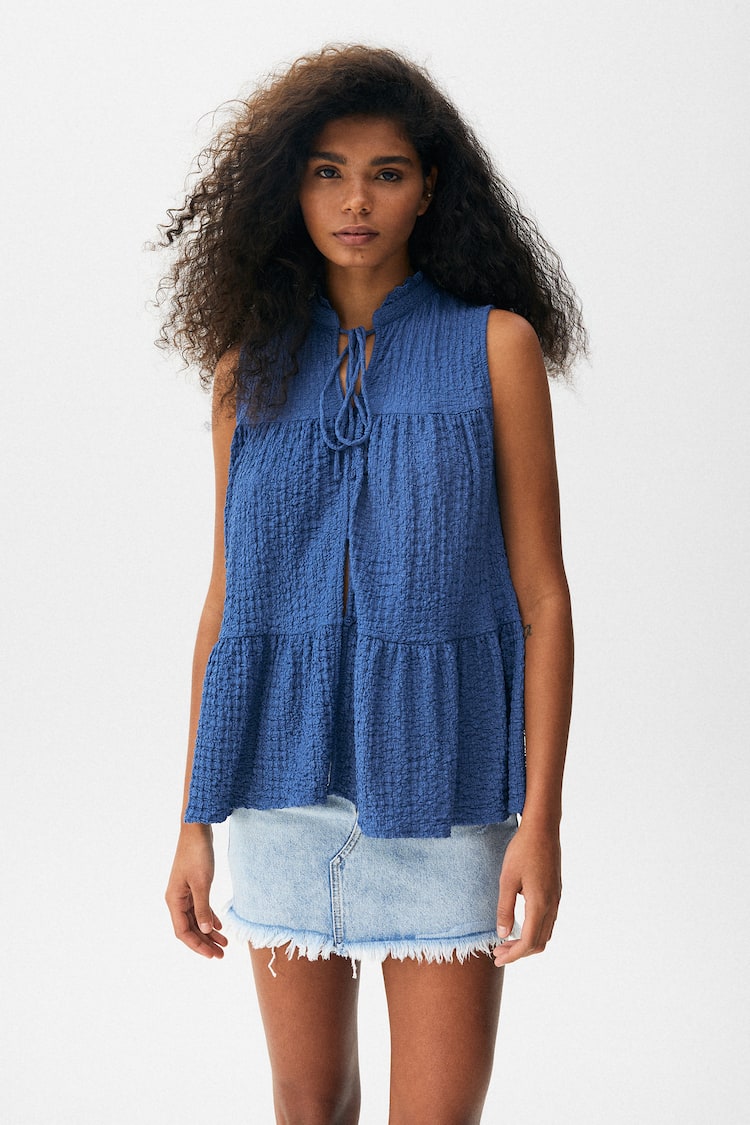 Contar con una bonita blusa sin mangas que te ayude a huir del calor mientras mantienes todo tu estilo será otra de las cosas necesarias en tu lista de verano. Esta, de Pull&Bear, te llamará además la atención por su bonito tono azul así como por detalles como los volantes, muy favorecedores. En cuanto a su precio, está disponible por solo 13,99 euros cuando antes costaba 19,99.