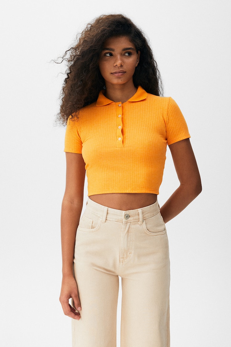 De nuevo el estilo retro vuelve a quedar reflejado una vez más en este llamativo polo de color naranja disponible en Pull&Bear. Cuenta con uno de los colores que mejor representa el verano y tiene la capacidad de combinar tanto con pantalones como con shorts y faldas gracias a su corte en la cintura. Su precio, además, es de tan solo 12,59 euros. Antes costaba 17,99, por lo que no querrás dejarlo escapar.