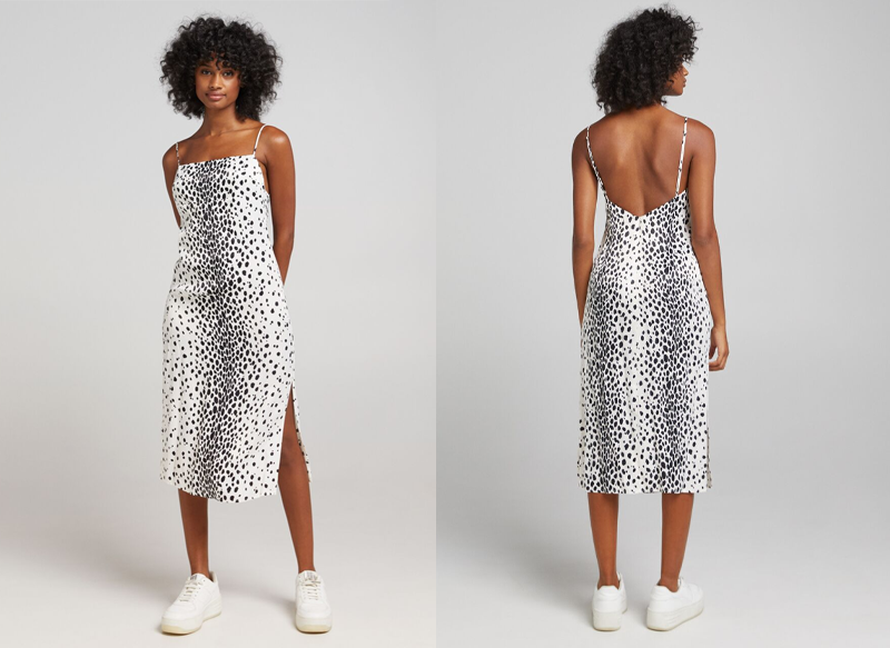 Si te gusta apostar por un diseño deportivo pero al mismo tiempo más llamativo, este vestido midi satinado lencero animal print puede ser lo que estés buscando. De color blanco, está lleno de print de color negro que imita la apariencia animal, dándole un toque muy llamativo. En este caso, es una prenda que se encuentra a la venta por 25,99 euros.