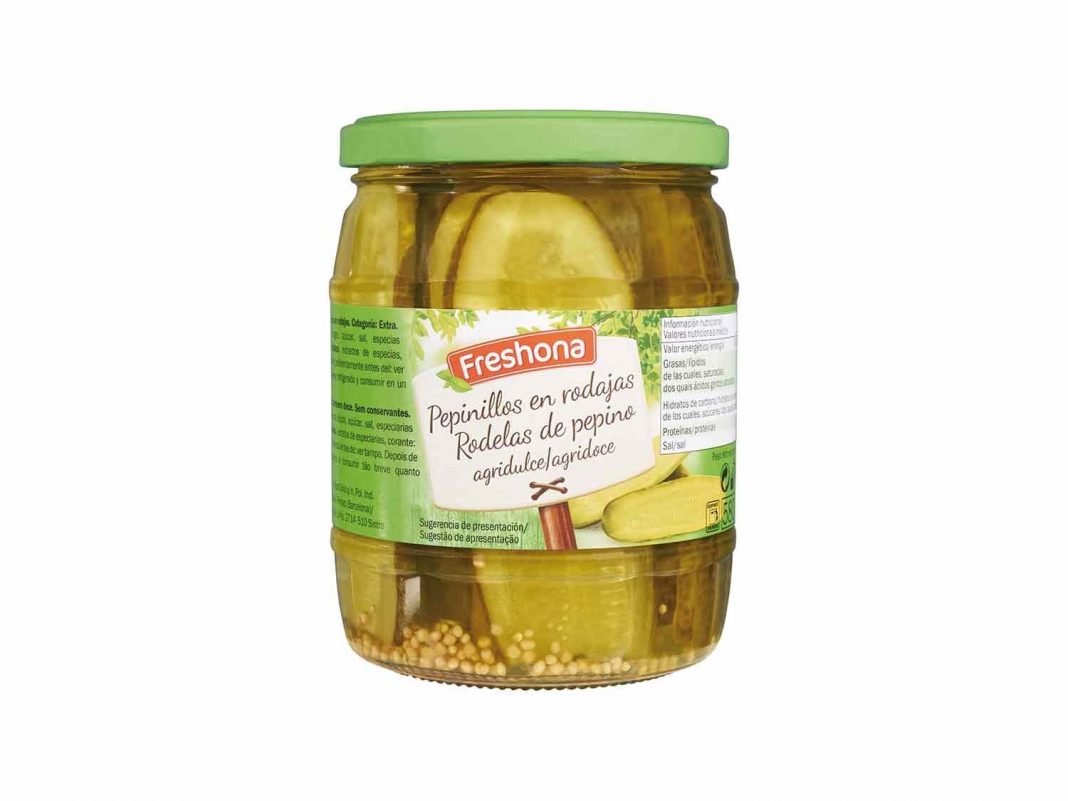 Y sin dejar las conservas, pasamos de algo muy común en la dieta diaria algo más pensado para el picoteo, entrantes… Los hay de dulces, de salados, y gente que le gustan productos como los pepinillos, agridulces. Aquí están también ya preparados y cortados en láminas para servir y consumir. También de Freshona, está con un 20% de descuento y un precio de 1,19 euros el tarro de casi 300 gramos de producto escurrido. Ocho chollo de la semana para meter en la cesta.