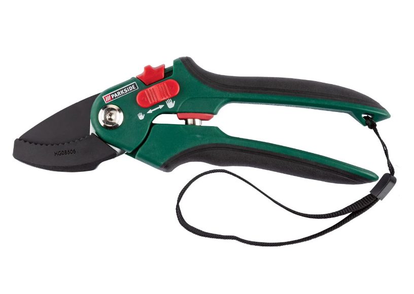 Mantén tu jardín y tus plantas en perfecto estado con estas tijeras de podar de Lidl. Las hojas son de acero al carbono pulido, tiene un mango adaptable para manos más grandes o más pequeñas. Tiene un cierre de seguridad fácil de colocar con una sola mano e incluye una correa de mano. Hay dos modelos, una tijera bypass, para flores y arbustos ornamentales, y otra de yunque, para setos y materiales más fibroso y duros. El precio es de 3,99€.