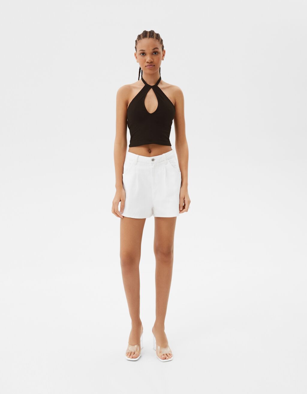 Los tops se han convertido en una de las prendas más deseadas de Bershka. En la tienda los encontrarás con cientos de diseños para que se adapten al 100% a tu estilo. En este caso, destaca este de estilo rib y diseño cut out, corto y un bonito e intenso color negro, ya que te podrá acompañar a todas tus citas. Su precio, de tan solo 7,99 euros, merece y mucho la pena.