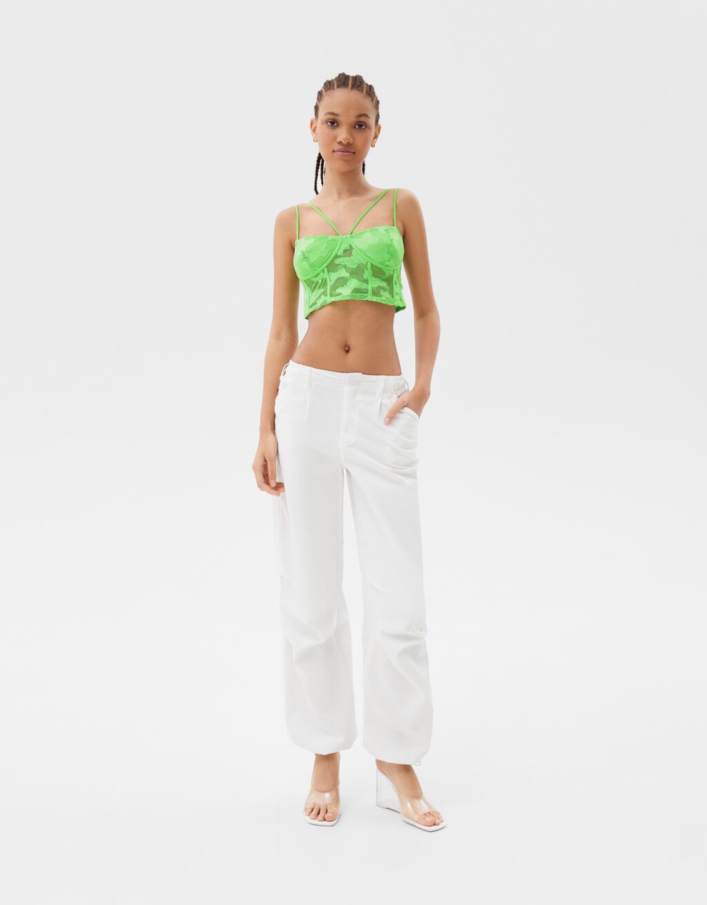 Si buscas prendas originales con las que llamar la atención y salirte un poco de la norma, sin duda este top de Bershka será uno de tus favoritos. Se trata de un top con diseño corsé que destaca gracias a su intenso color verde vibrante, uno de los más buscados de la temporada. Sexy y casual al mismo tiempo, te lo puedes llevar a casa por solo 15,99 euros.