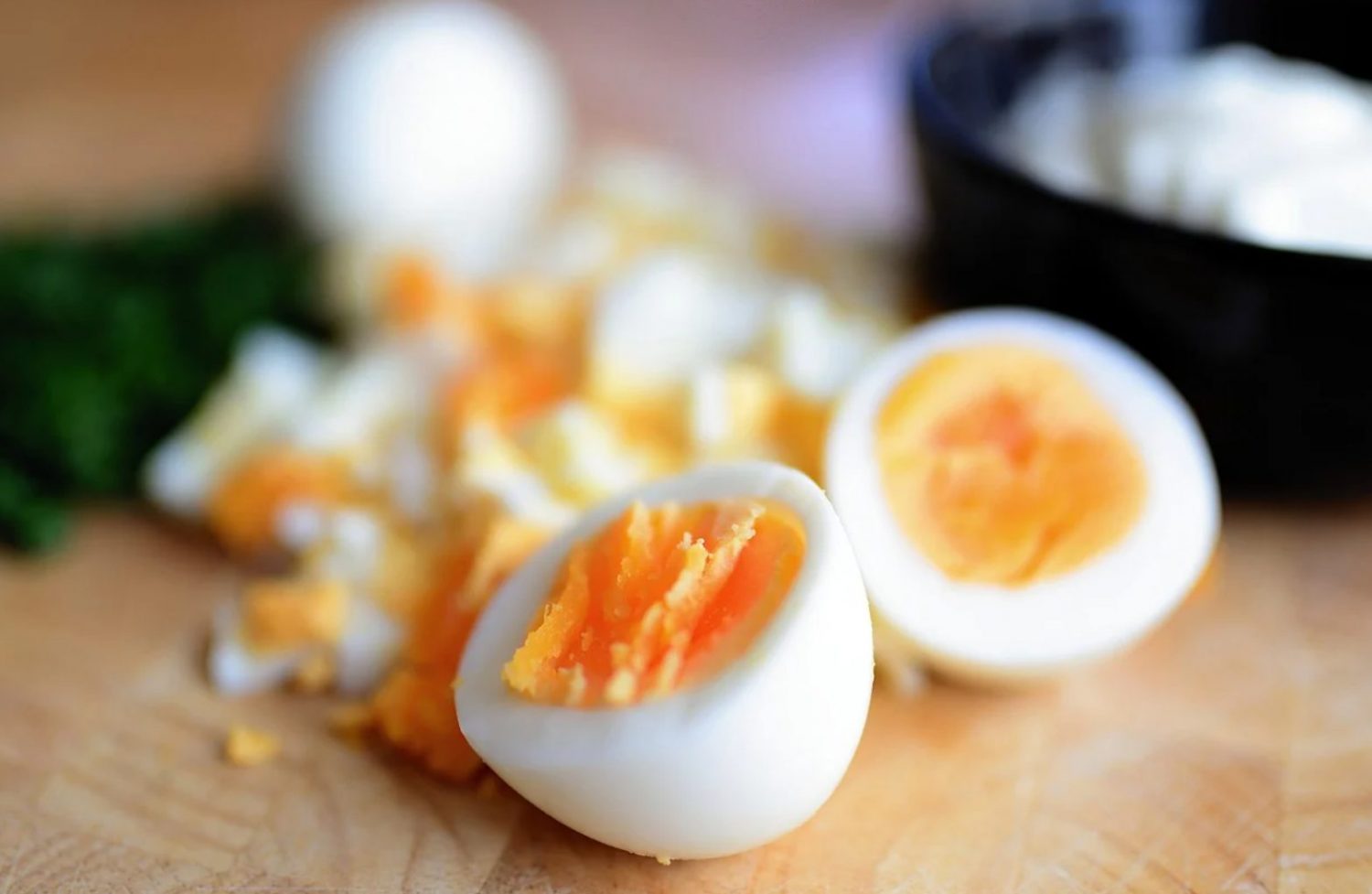 Después de haber conseguido enfriar los huevos y haber esperado el tiempo necesario, puedes pelarlos con facilidad. Una vez pelados, debes picar bien las cuatro unidades. Ha llegado el momento de coger un bol amplio y añadirlos al mismo. Este será el recipiente donde mezclarás el resto de ingredientes para tu ensalada de atún.