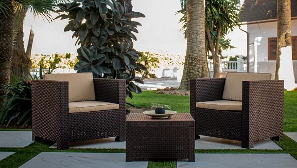 Qué te parece tomarte una copa mirando las estrellas en estos dos sillones. Pues hazlo con un conjunto compuesto por dos sillones individuales de 74x66x72 cm (largo x ancho x alto) y una mesa de 57x57x34 cm (largo x ancho x alto). Incluye cojines de asiento y respaldo. Es apto para 2 personas. Lo mejor es el precio porque cuesta 119,55 euros, así que te ahorras 120,45, o lo que es lo mismo, más del 50%.