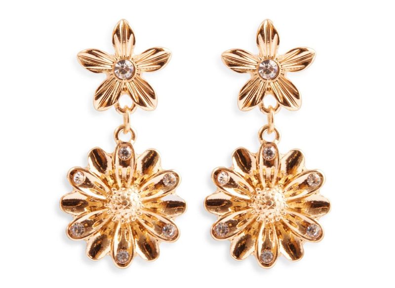 En Primark tenemos que destacar estos pendientes dorados colgantes con flores de strass, un interesante modelo que se encuentra a la venta por tan solo 3 euros y que a simple vista parecen unos pendientes mucho más caros.