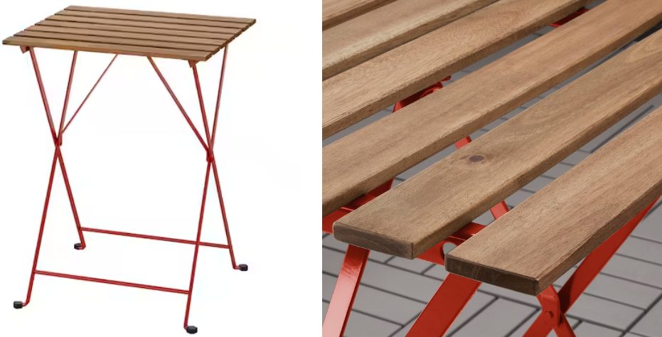 De forma general, solemos pensar que, si necesitamos una mesa de exterior, tendremos que preparar unos cuantos euros para conseguirla. Sin embargo, desde Ikea vuelven a desechar ese pensamiento a través de este elemento útil, funcional y lleno de estilo. Con tablero de madera y patas rojas, esta mesa será perfecta incluso para tu balcón. Su precio, de tan solo 19 euros, también llama la atención.
