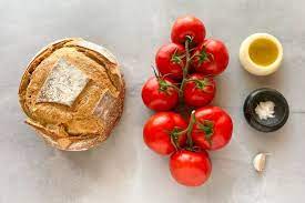 No hay duda de que el ingrediente principal del salmorejo es el pan, concretamente la miga. Lo bueno es que podemos hacerlo con todo tipo de pan, ya sea de harina de trigo, de centeno, de cebada, etc. El pan se remoja en agua con sal y vinagre (opcional).