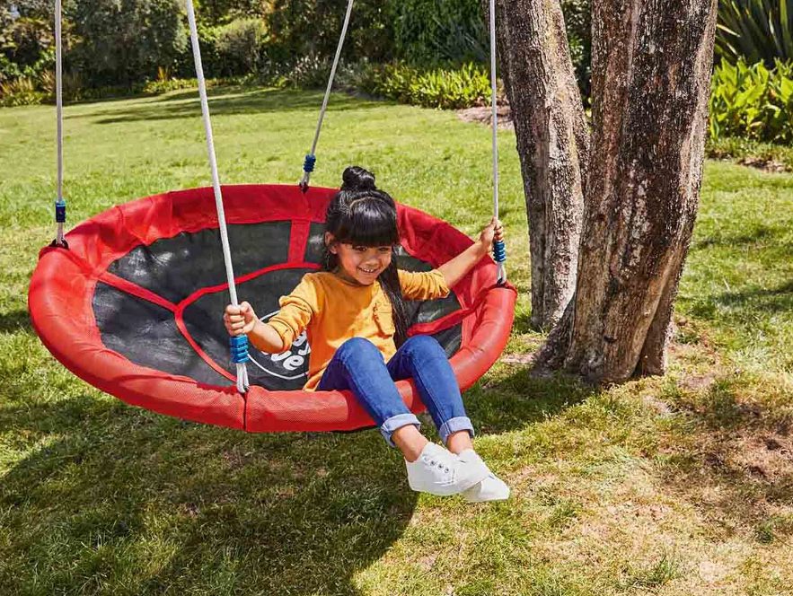 Este bonito columpio nido, es una gran apuesta para la diversión si tienes un jardín. En este caso lo pueden usar tanto pequeños como mayores, ya que resiste hasta 150 kg. Es resistente, de acero acolchado, con altura regulable entre 105 y 180 cm. El montaje es rápido y sencillo y se sujeta con 4 cuerdas y anillas de acero. Se puede guardar cuando no se esté utilizando, ocupando poco espacio. Estimula el sentido del equilibrio y la motricidad. Lo puedes conseguir en Lidl por 34,99€.