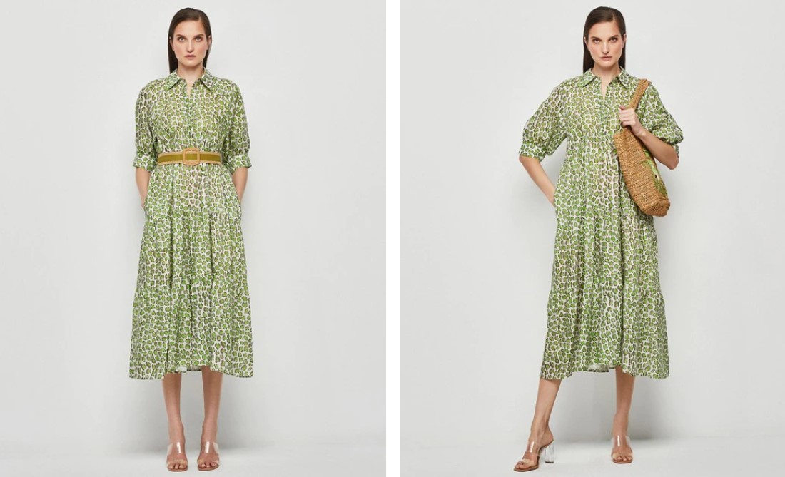 Este otro vestido midi de lino también podrás encontrarlo en la página web de El Corte Inglés. Está disponible únicamente en color verde naturaleza. Tiene cuello camisero, mangas cortas abullonadas, cinturón y hebilla de inspiración rústica. Es un vestido que realza un estilo rural chic para sentir la naturaleza de cerca, en el campo y en la ciudad. Es ideal para ir a trabajar o una ocasión especial. Este modelo es algo más caro que los anteriores. Lo consigues a 295 euros.