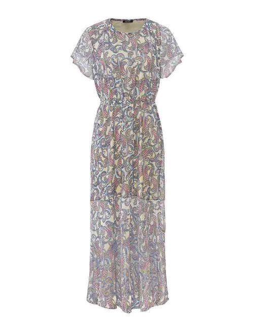 Si te gustan los vestidos largos, pero prefieres la manga corta, en Lidl tienes esta otra alternativa. Las mangas cortas están decoradas con volantes semi transparentes, el cuello es redondo y el vestido lleva un elástico en la cintura para darle una forma entallada muy favorecedora. Es de gasa de poliéster, muy ligero y fresco, con un estampado de cachemir en tonos claros. Te lo puedes llevar por 10,99€.
