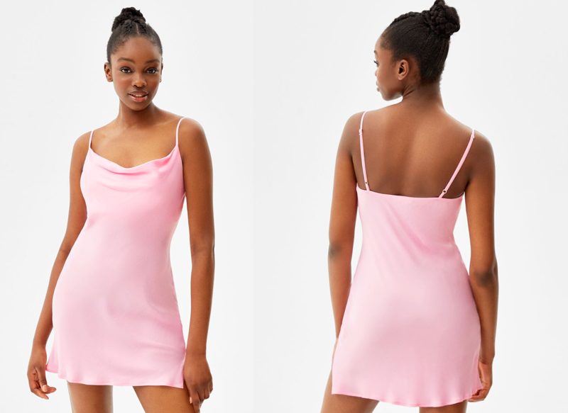 Si estás buscando nuevos vestidos para lucir este verano, en la firma del grupo Inditex tienes muchas opciones entre las que elegir, entre las cuales se encuentra este vestido mini satinado lencero. Disponible en verde, rosa y morado, se encuentra a la venta por solo 17,99 euros.
