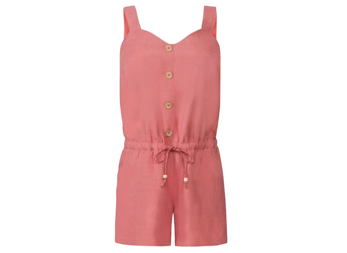 Lidl tiene también esta opción de mono de lino, también tendencia cuando llega el buen tiempo y que luce en cualquier situación, cómodo y original. Este es de botones y cintura elástica, con escote de palabra de honor con tirantes anchos y tira de botones decorativos. Cuanta también con tirantes regulables con botón trasero. Está hecho en lino y viscosa. Su precio con el 18% de descuento se queda en 6,50 euros.