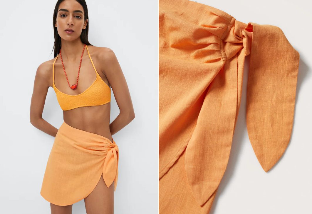 Esta minifalda estilo pareo la podrás usar para completar tus looks de playa, pero también para salir. Una de las cosas que más llama la atención es su color, un bonito naranja apagado que favorecerá a todas. Además, gracias a su nudo lateral, estilizará tus piernas como ninguna otra. En cuanto a su precio, la puedes encontrar por tan solo 22,99 euros.