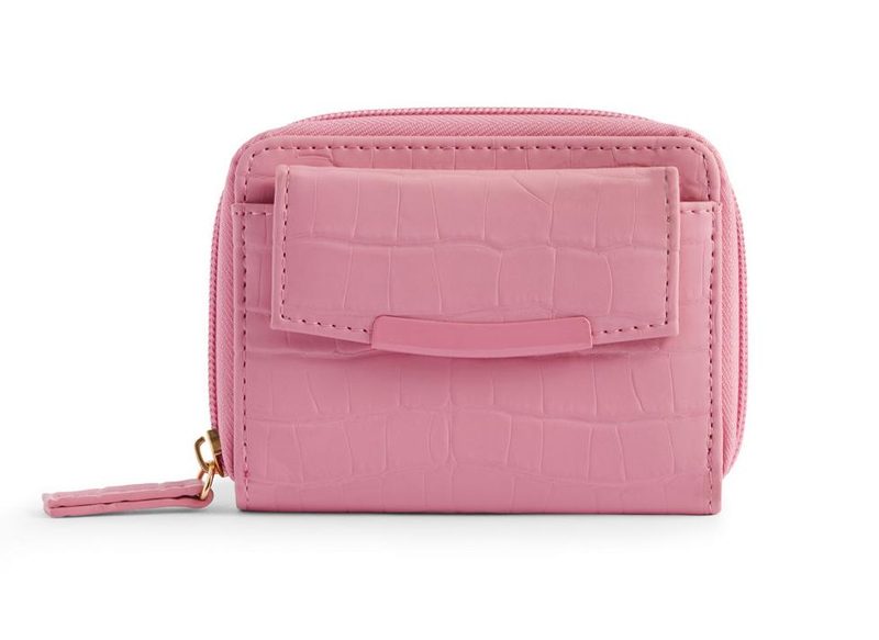 En la cadena de origen irlandés es posible encontrar opciones muy interesantes para poder llevar el dinero de un lugar a otro, como es el caso de este monedero con solapa y efecto piel de cocodrilo, que está diseñado en acabado rosa intenso.