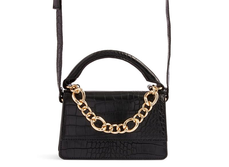 En Primark hay una extensa cantidad de posibilidades entre las que elegir para encontrar el complemento ideal para cada ocasión. Este bolso negro de piel sintética con efecto piel de cocodrilo es un modelo muy a tener en cuenta.
