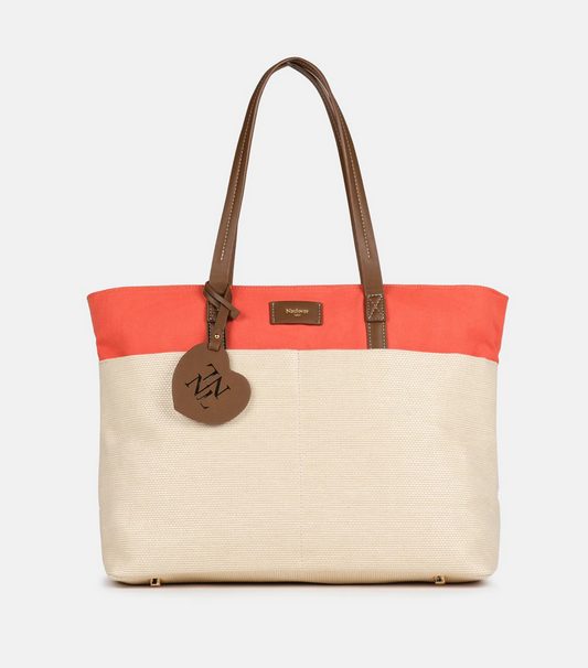 El bolso shopper es el preferido por esas personas que necesitan espacio. Este que te mostramos es de la firma Naulover, y es de rafia con detalles en material de algodón en color coral. Es amplio, con unas medidas de 16,5 (ancho) x 44 (fondo) x 31 (alto) cm y cuatro amplios bolsillos para clasificar todos los objetos personales. Cierra con cremallera y tiene un asa con una longitud perfecta para llevar al hombro o en la mano. Ahora en El Corte Inglés tiene una rebaja del 40% y su precio se queda en 89,40€. Este es el enlace.