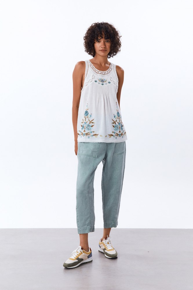 Las blusas de tirantes prometen convertirse en otra de las opciones más elegidas para esta temporada. Si quieres hacerle frente al calor pero no deseas perder ni un ápice de tu estilo, esta blusa blanca de Sfera se convertirá en tu mejor elección. En color blanco, cuenta con detalles de jaretas en la parte frontal para darle un toque extra. Su precio, de solo 23,99 euros, te terminará de convencer.