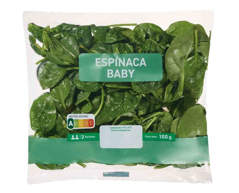 La espinaca cruda es un bocado perfecto para completar nuestras ensaladas, y es muy recomendable obtener un buen aporte de vitamina C, hierro, ácido fólico y otros nutrientes básicos para la salud. Se venden en paquetes con el producto lavado y listo para consumir. También es muy práctico para incluir en revueltos, pizzas o paninis, solo hay que incluir un puñado de espinaca y preparar la receta de la forma habitual. Esta semana la bolsa tiene un 27% de descuento y sale a 0,69€.