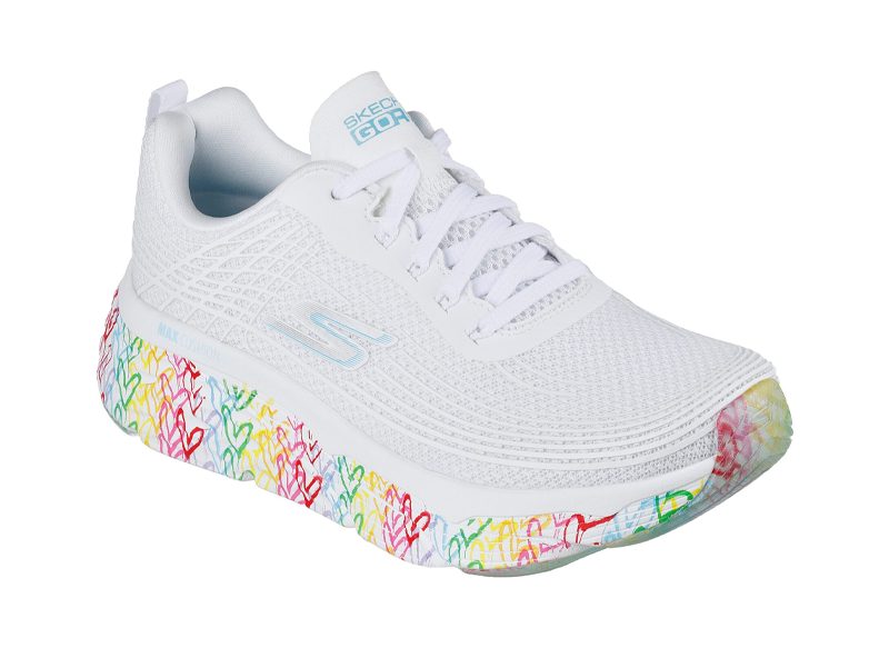 Si prefieres un modelo de tonos blancos, estas Skechers JGoldcrown: Max Cushioning Elite – Live to Love pueden ser una opción perfecta para ti. A la venta por 125 euros, se trata de un un calzado de ancho medio en color blanco combinado con el diseño de corazón característico de James GoldCrown.