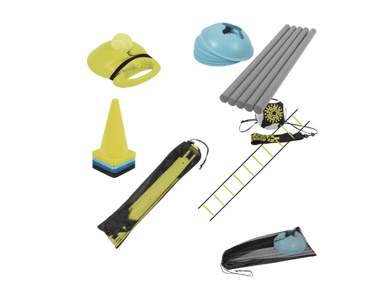Entre los accesorios de entrenamiento que podemos encontrar se encuentran el entrenador de fútbol; entrenador para tenis individual; escalera de agilidad; juego de conos; y juego de vallas.