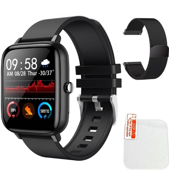 Seguimos con la lista de productos de Shein que consigues más barato que en Apple y encontramos este otro smartwatch deportivo que trae un protector para la pantalla y dos correas que se ajustan perfectamente a la muñeca y transpira. El medidor de tensión, del ritmo cardíaco y de la saturación en sangre no es muy fiable, pero te permite hacerte una idea de los pasos y las horas de sueño. Se vincula fácilmente con el móvil para que te avise de los WhatsApp que recibes y la salida de audio también funciona bien. Tiene un precio de 23,25 euros.