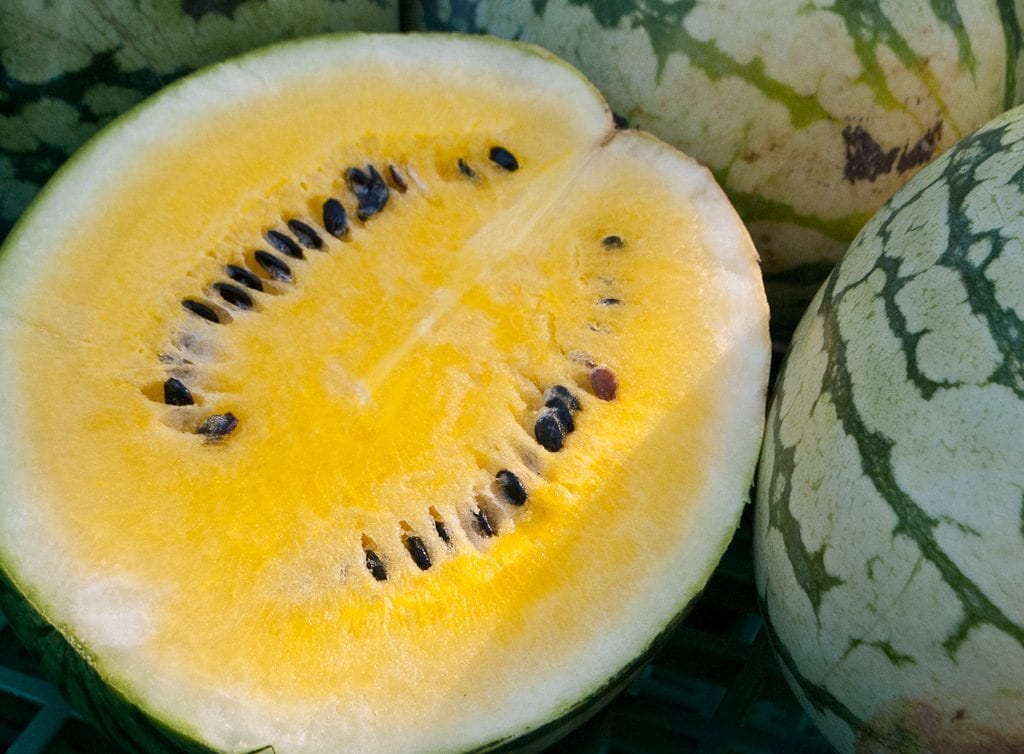 Con el calor del verano el consumo de sandía se incrementa. Es la fruta estival por excelencia por su gran poder refrescante y su contenido en agua. A la hora de ir a la frutería podemos encontrar distintas opciones, entre las que se encuentra la sandía amarilla, una variedad peculiar, con algunas similitudes y diferencias con respecto a la sandía roja a la que estamos acostumbrados. Por fuera, ambas variedades con casi idénticas, pero por dentro parecen frutas totalmente diferentes.