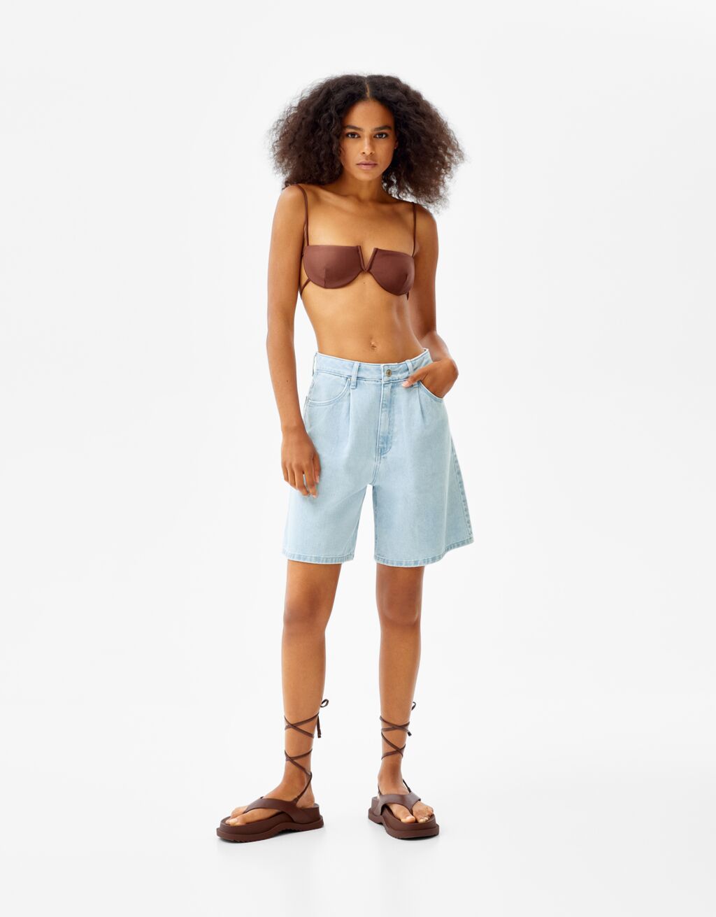 De forma general, las bermudas suelen ser unas de las prendas más cómodas para cualquier ocasión. Si necesitas un pantalón de verano que puedas usar en el día a día, incluso cuando hace más calor, esta prenda de Bershka sin duda será tu mejor elección. De diseño denim y tono claro, la podrás combinar con todo y lucir a cualquier hora. Además, está disponible por solo 25,99 euros.