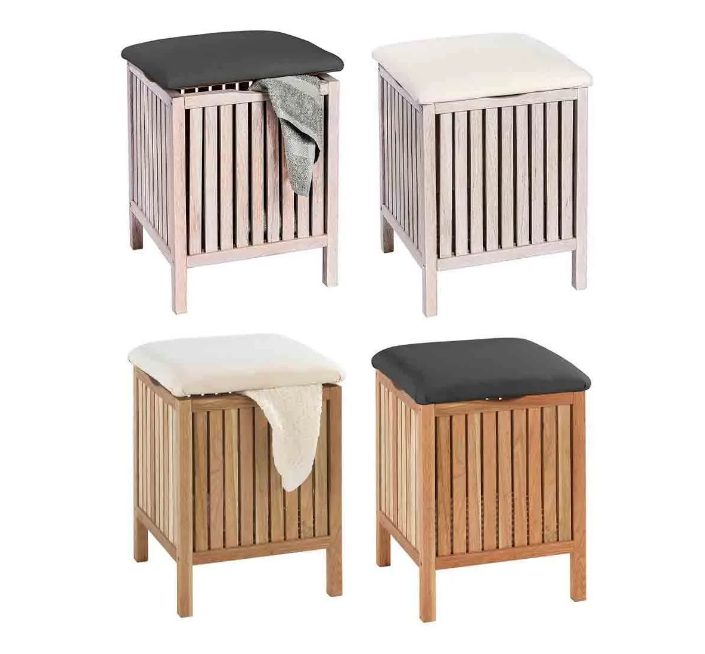 Este mueble 2 en 1 es muy práctico para aprovechar el espacio en el baño. Es de la marca Wenko y combina a la perfección, funcionalidad y diseño. Tiene mucho espacio de almacenamiento en el interior, asas para facilitar la apertura y un asiento con un cojín mullido y cómodo. La estructura es de madera maziza de alta calidad. Las medidas son 39 x 52 x 39 cm. y hay varios modelos disponibles. Su precio en Lidl es de 49,99€.