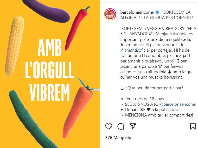«¡Sorteamos cinco veggie vibradores para cinco ganadorxs! Comer saludable es importante para una dieta equilibrada. Tenemos un cesto lleno de verduras para sortear«, explican en las redes sociales. «Hay de todo: un buen pepino, zanahoria para aliñar a cualquiera, un xili muy picante, una mazorca para haceros palomitas y una berenjena con la que cocinaros una musaka buenísima», prosigue la publicación.