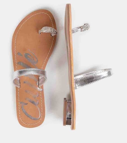 Si te gustan los brillos estas sandalias son para ti. Tiene la suela plana con un tacón de 1,5 cm para una gran comodidad. Lleva dos tiras una en el empeine de color plateado y otra en el dedo, también plateada, con un detalle de brillantes insertado. Ideales para combinar con todos tus looks, y aportar un toque glamouroso con este calzado tan veraniego. Con el descuento de El Corte Inglés del 49% su precio actual es de 35€. Si te gustan, las tienes aquí.