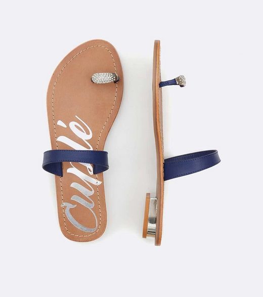 El azul es un color muy original para el calzado, y además de ser versátil, nos permite salirnos de los clásicos negro o marrón. Estas sandalias de la firma Cuplé tienen dos tiras en color azul, y con detalle de brillantes en el dedo para un toque final glamouroso a cualquier conjunto. Tiene una suela plana rematada con un cómodo tacón cuadrado de 1,5 cm de altura. Las tienes con descuento en El Corte Inglés por un precio de 35€. Puedes buscar tu talla en este link.