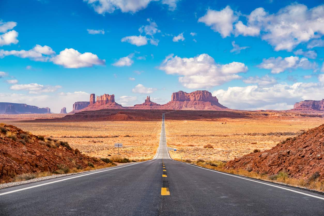 Hay parajes de Estados Unidos que conocemos como si los hubiésemos visitado en persona. Es el caso del impresionante paisaje del Monumento Valley, en la frontera de Utah con Arizona, icónico escenario de los westerns de la época dorada de Hollywood. Destaca por sus formaciones rocosas de intenso color rojo a causa del óxido de hierro, con formas singulares debido a la erosión. Muchas películas del director John Ford se rondaron en estos paisajes.