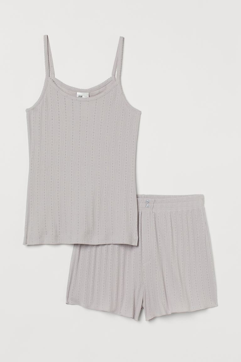 Con la llegada de los descuentos, no solo debemos pensar en construir nuestro armario para la temporada. Otras de las prendas que no pueden faltar son aquellas que te hagan sentir cómoda también en casa. Es el caso, por ejemplo, de este pijama de H&M elaborado en punto. Con un bonito tono gris neutro, ahora te lo puedes llevar por tan solo 7,99 euros cuando antes costaba 19,99.