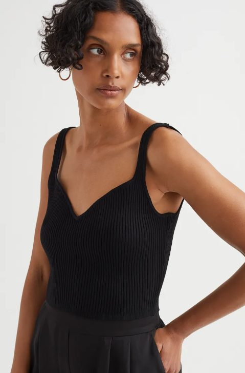 Los tops básicos y sencillos prometen convertirse en las prendas más especiales de nuestro armario para esta temporada. Ideales para crear cientos de looks, en H&M destacan opciones como este en un intenso color negro. Será ese clásico que nunca falla y además lo podrás conseguir por tan solo 4,99 euros. Su precio anterior era de 9,99, por lo que lo encontrarás a mitad de precio.