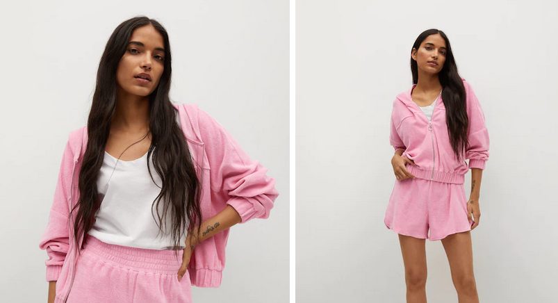 Este modelo es de pantalones cortos en tejido toalla. Sí, ese tacto que tanto nos gusta salir de la playa o de la piscina, pues lo puedes tener en tus shorts. Por 19.99 euros lo tienes en Mango y solo en color rosa.