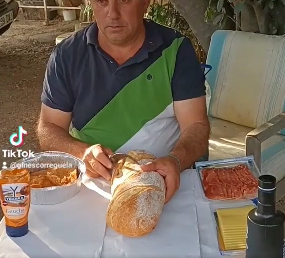 Algunos miden por lo menos un metro. En su interior, productos frescos de la huerta donde no puede faltar una excesiva cantidad de aceite de oliva. Así son los bocatas que prepara Ginés Corregüela y que han supuesto para él la llave hacia la fama. En la actualidad, los usuarios de Tik Tok están enganchados a sus vídeos, así como a algunas de sus frases más famosas, como la de «queso de pegatina» o su grito de «¡Felipeee!», cuando llama a su pavo.