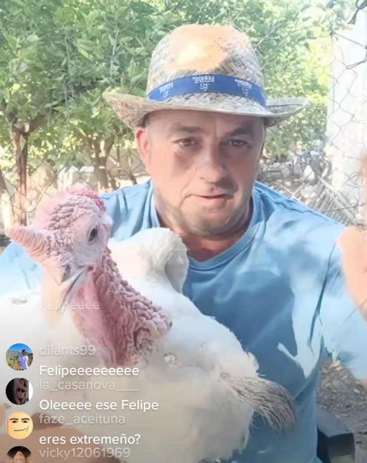 Uno de los ingredientes que no puede faltar en sus preparaciones es el aceite de oliva, que echa hasta que «empape», como él mismo repite una y otra vez. En su huerta, al aire libre y rodeado de animales, ahora presume de ser un auténtico influencer.