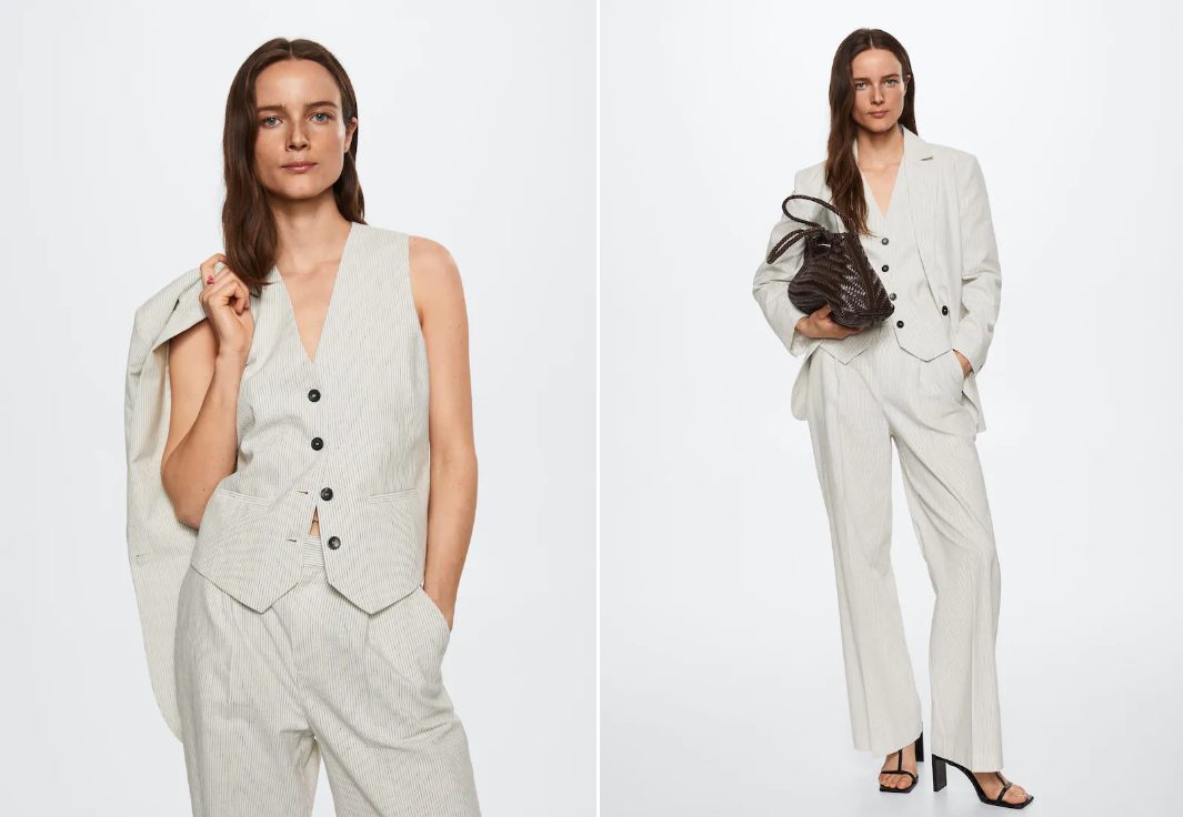 El verano no está reñido con las prendas elegantes y así lo demuestran en Mango a través de prendas como este chaleco de traje con raya diplomática. En tonos claros y muy fácil de combinar, será perfecto para crear un look de infarto para ir a la oficina, incluso con calor. En cuanto a su precio, lo puedes adquirir por solo 29,99 euros.