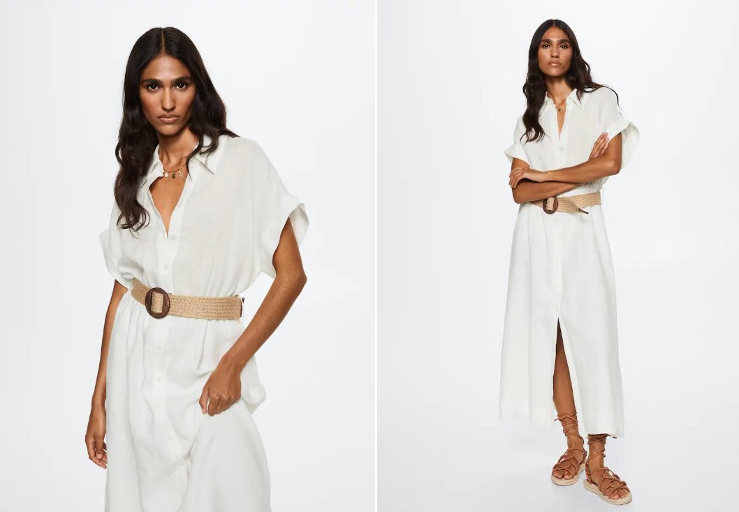 Los vestidos de corte midi siempre son un básico que incluir en el armario. En este caso, en Mango destaca este, por su bonito color blanco, que además es de estilo camisero y cuenta con botones en la parte frontal, para llevarlo como quieras. En cuanto a su precio, lo tienes disponible por 59,99 euros. Será toda una inversión.