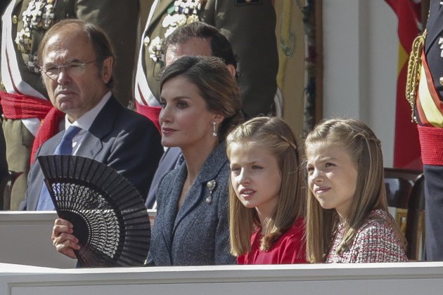 Mientras Felipe VI pasaba revista a las tropas, una sofocada reina se abanicaba en el palco de autoridades. Todo parece normal si no fuera porque esta actitud también va en contra del protocolo.