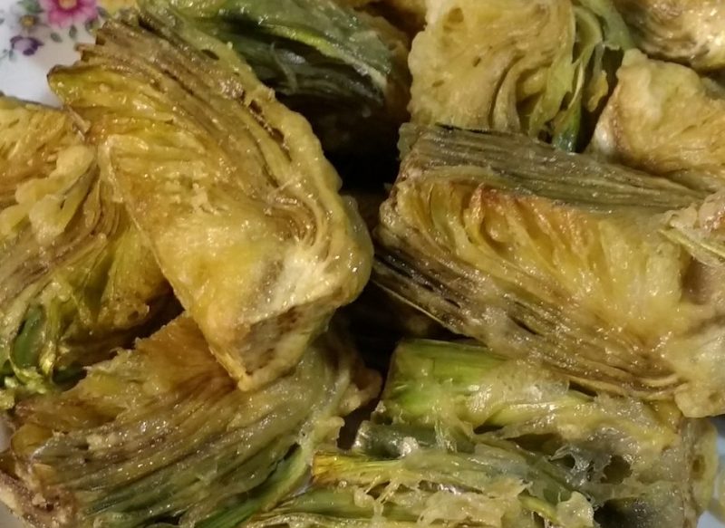 Uno de los secretos de este plato radica en el rebozado, que se basa en una variante de la masa orly. De esta manera se consigue que la alcachofa se encuentre cubierta con una fina capa crujiente, con un interior tierno y jugoso.