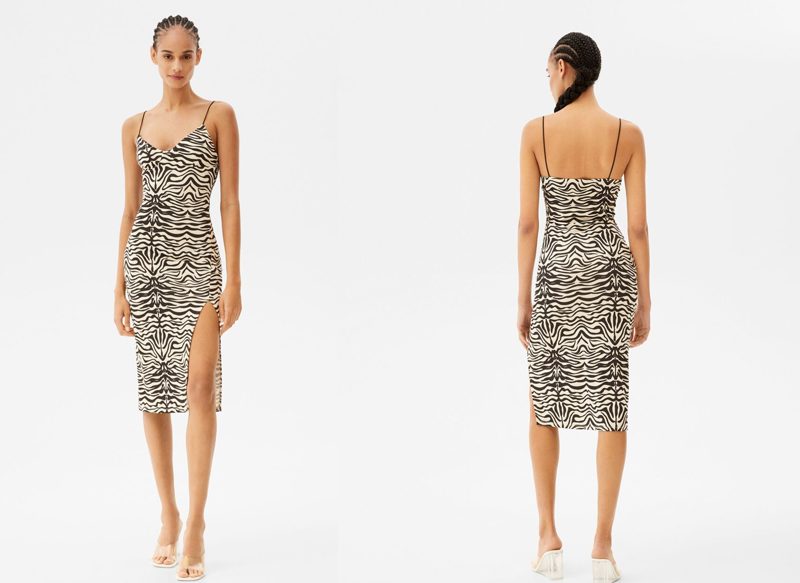 Entre las propuestas de la firma del grupo Inditex para este verano nos encontramos otro gran chollo en este vestido tirantes largo print, un modelo con un animal print de cebra que tiene el escote de pico y una abertura en la parte inferior.