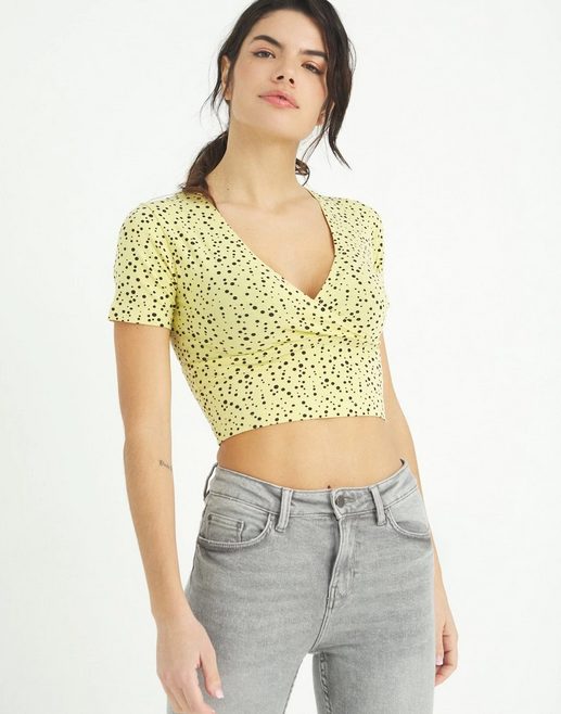 Las camisetas de tipo crop-top están muy en tendencia como parte de este revival de la moda de los años 90 que estamos viviendo. Así que el verano es la ocasión perfecta para lucir este tipo de prendas, juveniles y casuales. La marca Inside nos ofrece esta camiseta corta, de diseño cruzado y escote de pico muy favorecedor. Es de manga corta y con un llamativo estampado de lunares sobre fondo amarillo. Es de algodón con un 5% de elastano para un ajuste perfecto. Ahora la puedes conseguir en El Corte Inglés por 3,99 €. Aquí te dejamos el link directo.