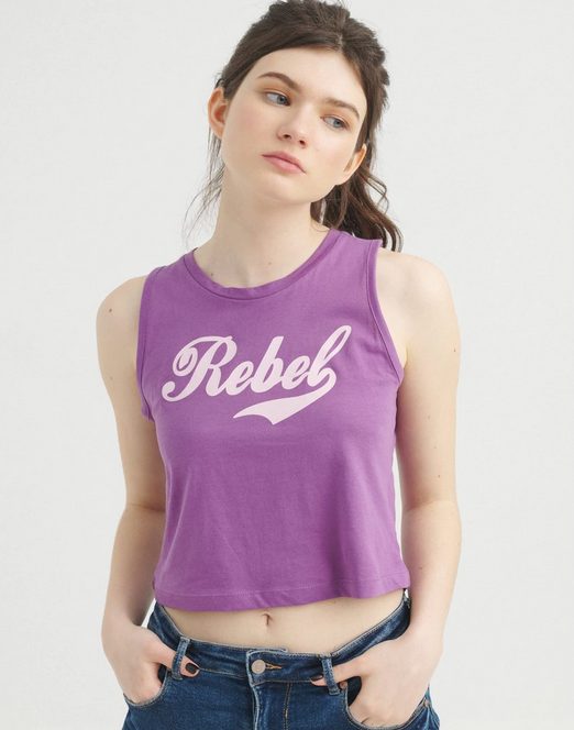 Perfecta para momentos casuales como días de playa, conciertos, festivales. Es la combinación perfecta de comodidad, estilo y frescor. Es una camiseta de tirantes anchos en un bonito color morado, con una inscripción frontal con la palabra Rebel. El cuello es redondo y es de estilo croped dejando el ombligo a la vista. Si quieres sentirte más tapada, combínala con unos shorts de talle alto. El precio es de 3,99€ y puedes buscar tu talla en este enlace.