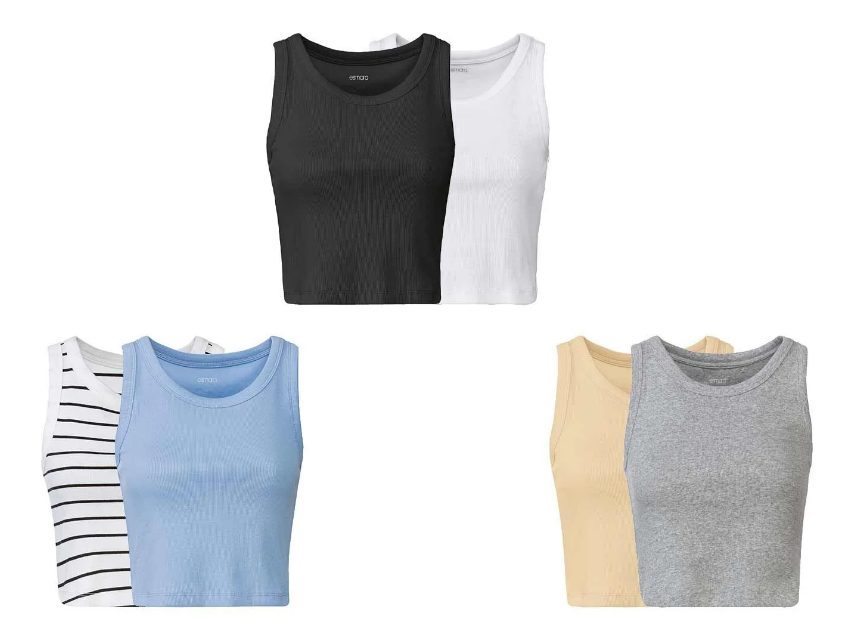 Siempre viene bien tener camisetas, porque es una de esas prendas que usamos sin parar. En Lidl ahora tienes un pack de camisetas con un moderno diseño crop que se convertirán en tu recurso comodín este verano. Son de algodón y elastano, con tejido de canalé ajustado y entallado.