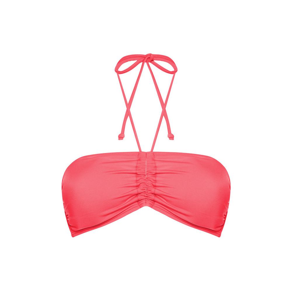 Es el modelo de top de bikini más barato en Primark. Por dos euros y medio podemos llevarnos este Top bandeau color coral para combinar, de color entre rosa y rojizo que seguro pegará con casi cualquier parte de abajo. A partir de ese precio, hay en stock otros por 3, 5, 7 u 8 euros. Por 2,5 también hay otro de color amarillo y otro color crudo a rallas.