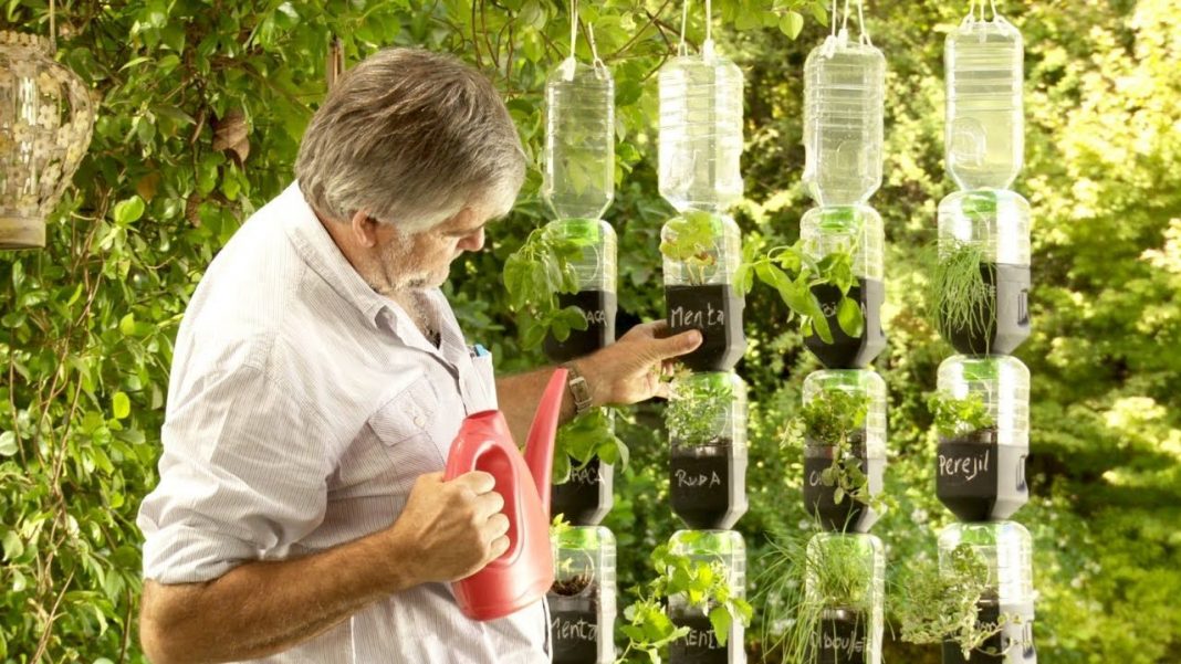 Otro método es el riego por goteo casero con botella de agua: Otro sistema sencillo y eficiente. Consiste en colgar una garrafa de agua y en ella haces un agujero en el tapón. Pones un tubito muy pequeño en él y enterrarlo en el agua. Así, tus plantas cogerán ese agua cuando lo necesiten.
